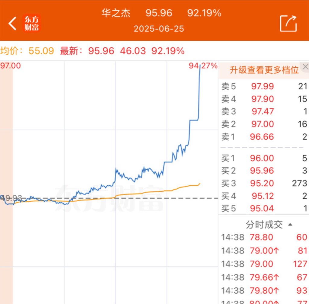 华之杰C4股价为49,下午直接翻倍,所以誉帆明天早盘不能全部卖,要卖下午卖,誉帆