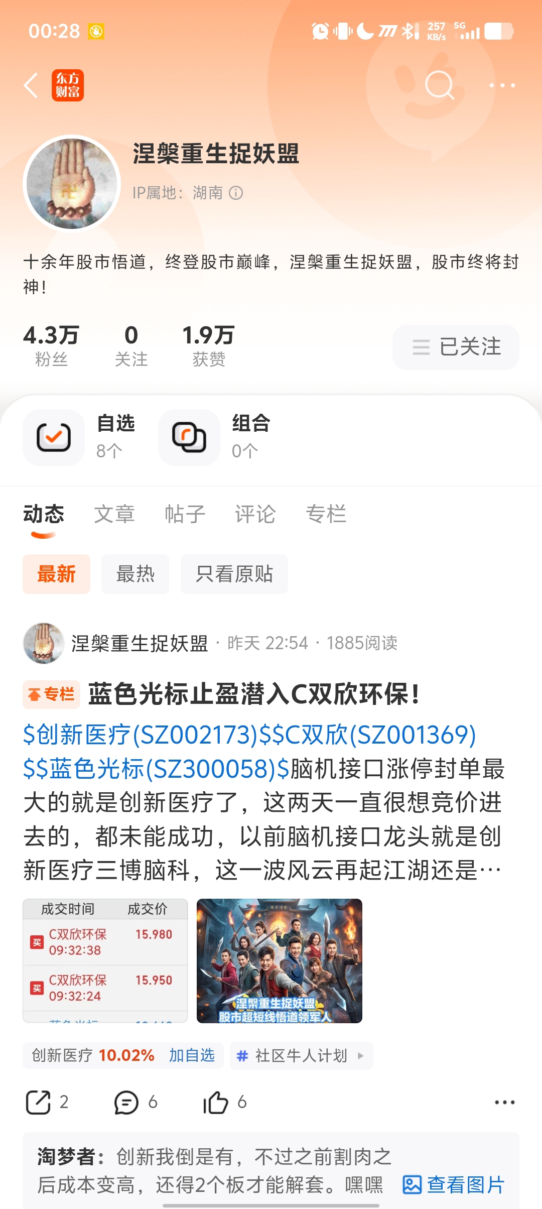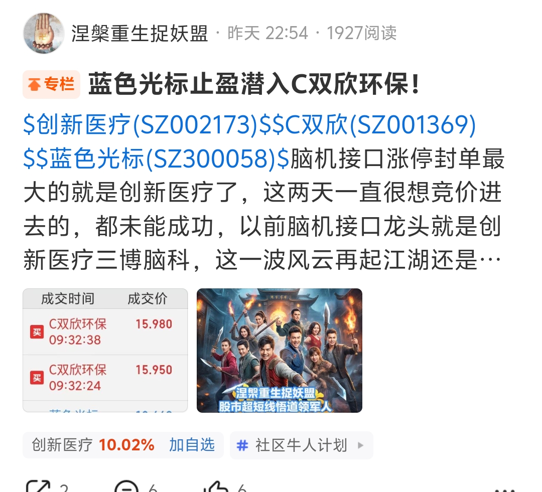 双欣环保今天超级大微,涅槃重生主力进场了,明天能不能跟风一下双欣,或者新广益。再