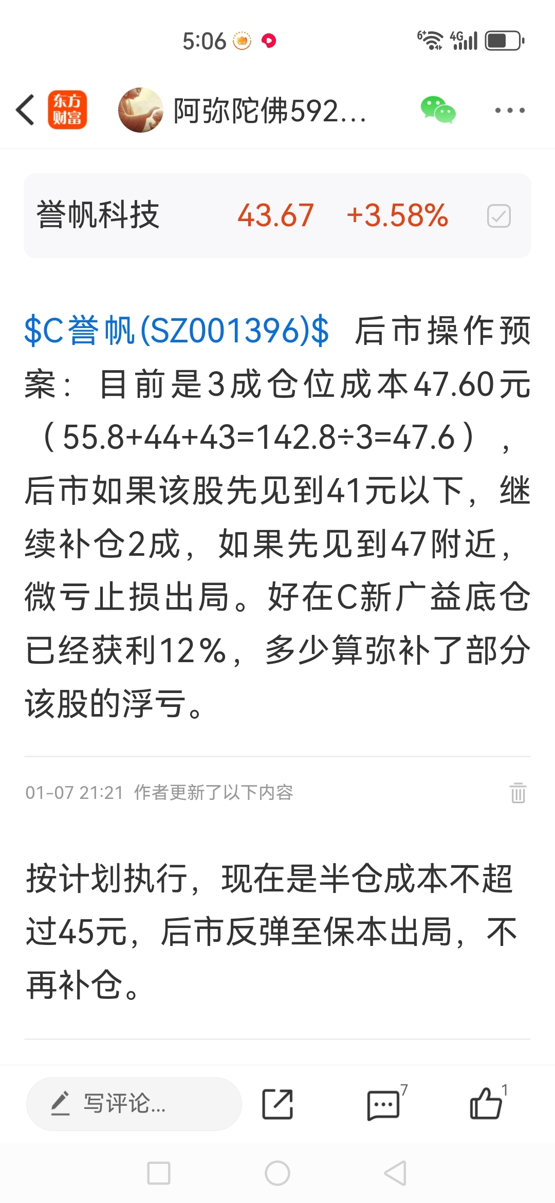 $誉帆科技(SZ001396)$ 已经实现了解套,去留请自便。