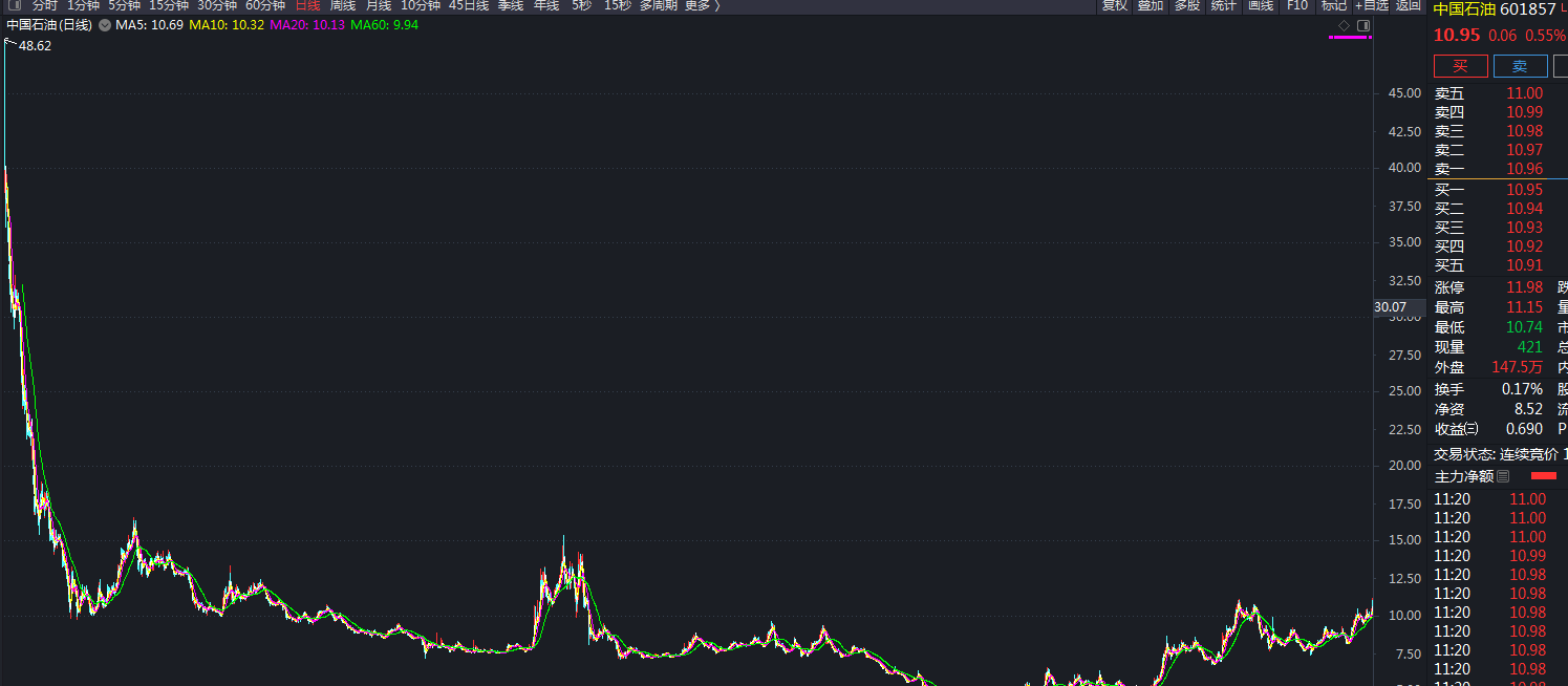 看看中国石油,19年了,也回不到开盘第一天的48元。你们应该欣慰了。