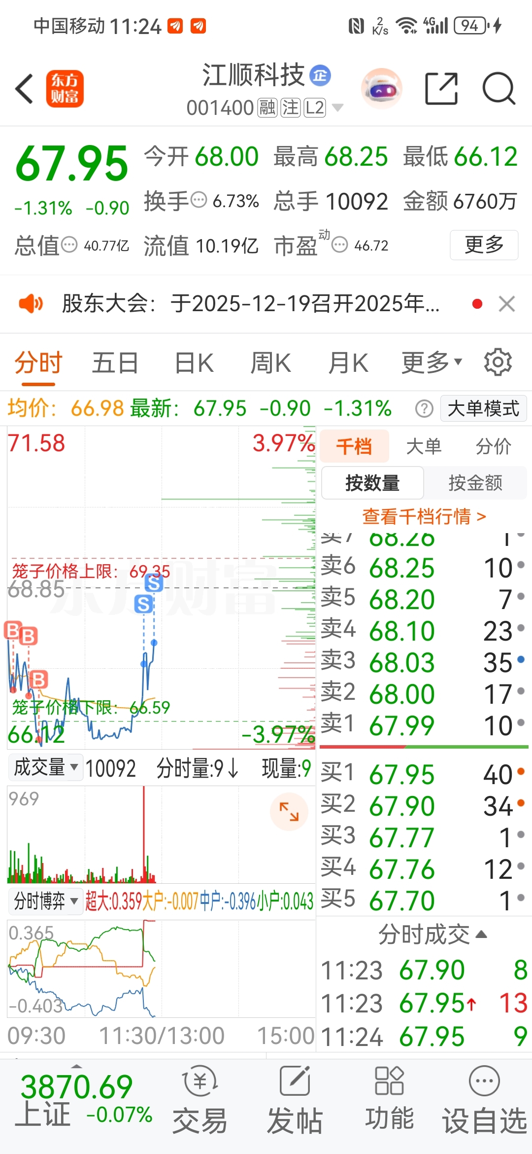 $江顺科技(SZ001400)$ 跟着感觉走,一步一回头。
