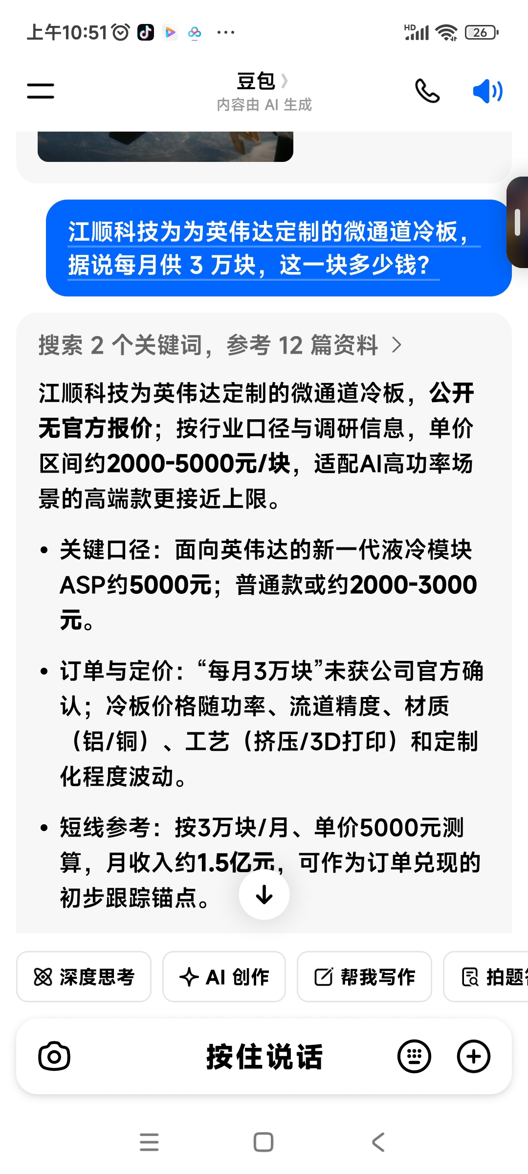 如果为英伟达定制冷板项目落地,这一个月1.5亿收入,光这一项一年就是18亿。