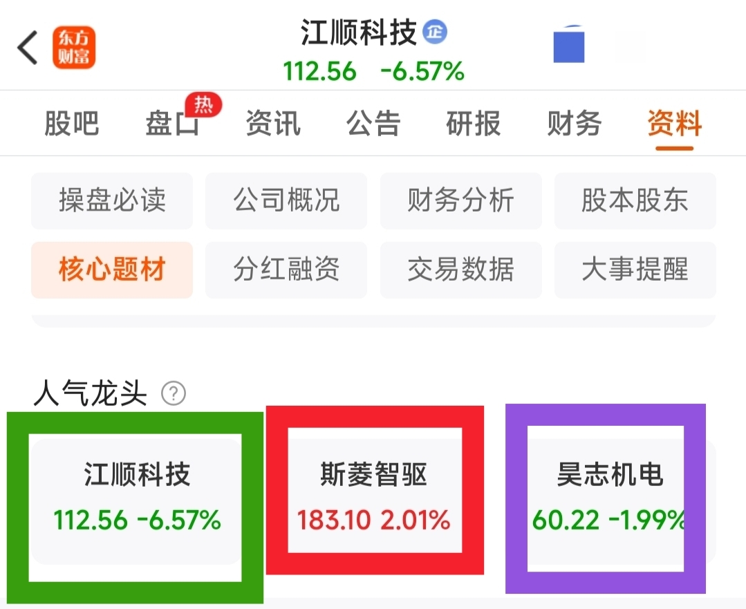 一个板块3个人气龙头江顺跌最惨。斯菱智驱183元收盘涨+2.2%、昊志机电60元