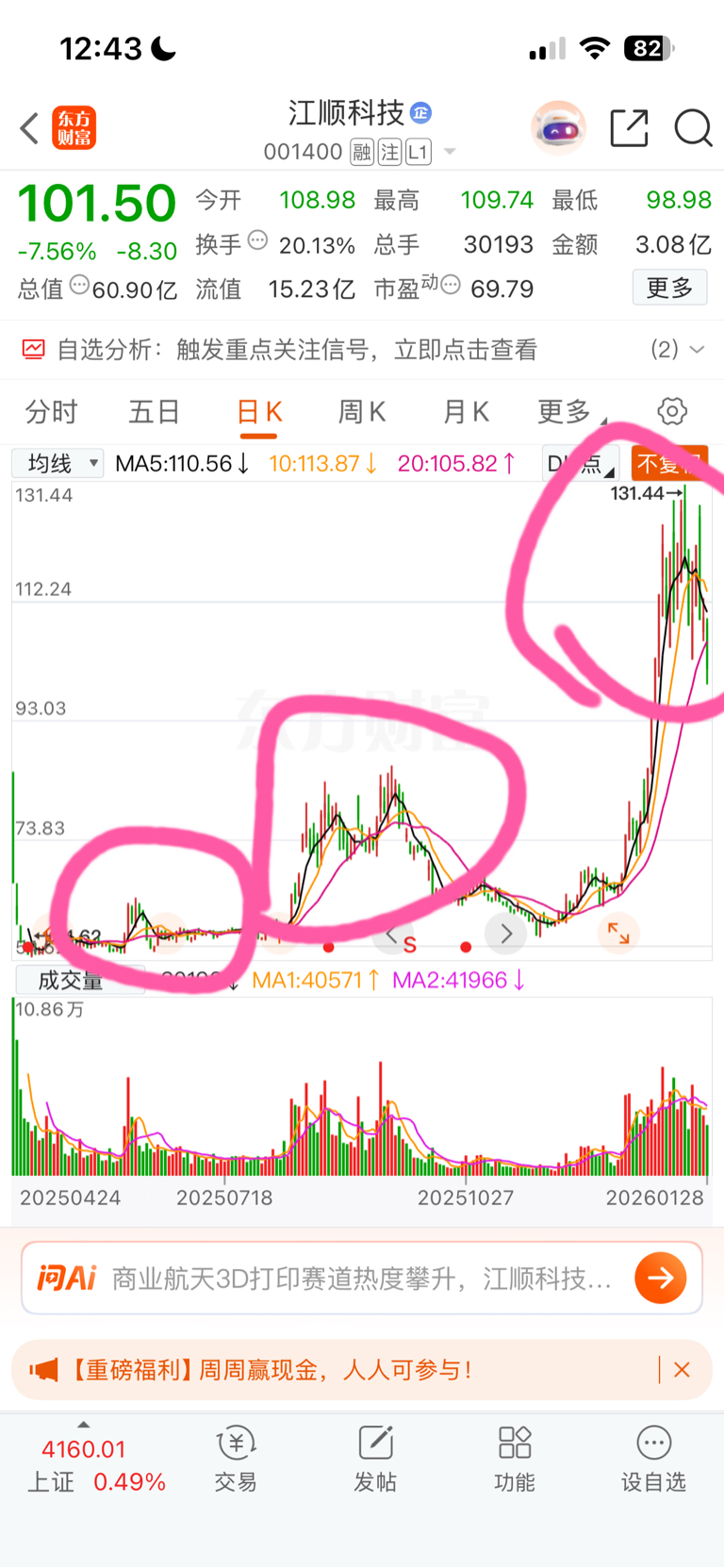 $江顺科技(SZ001400)$ 庄家这么喜欢画圆弧?