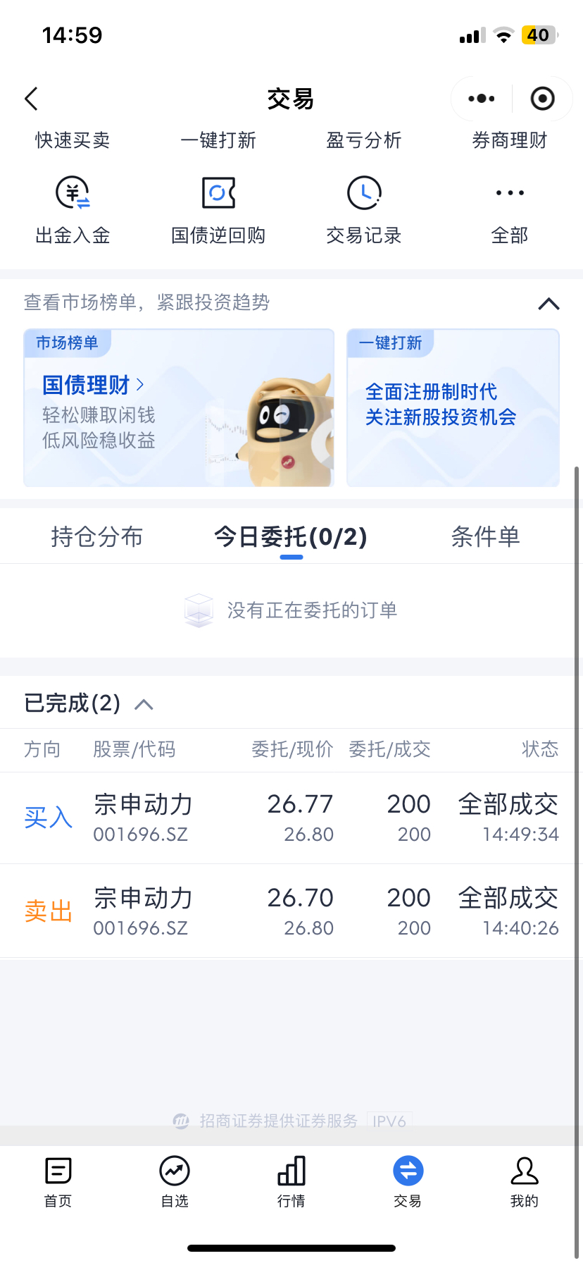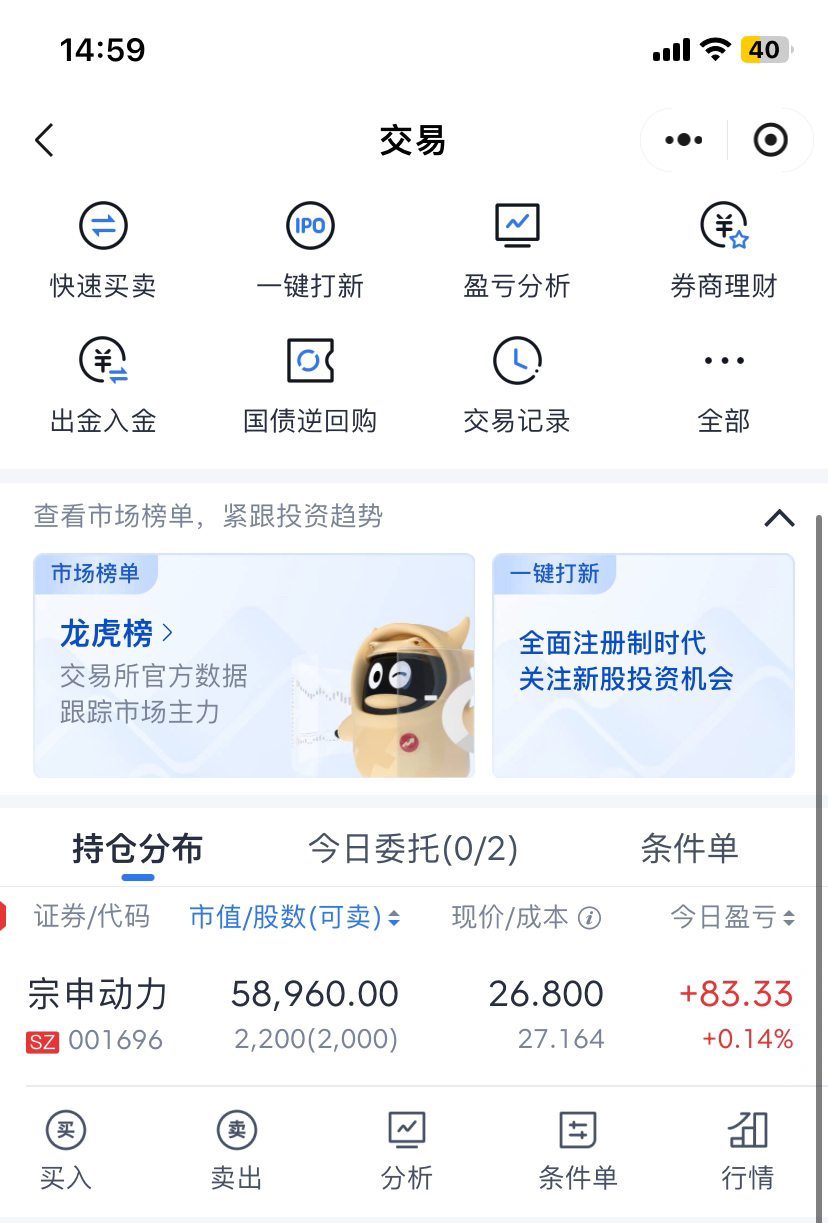 $宗申动力(SZ001696)$ 尼m的 ,在你这垃圾里躲牛市,下午两个点成功的错过了卖出、2点40分果断满仓卖出、4.2个点进香港证券、才发现、只成交了200股、后面重新挂卖出、结果太急了,给挂了卖入、无语