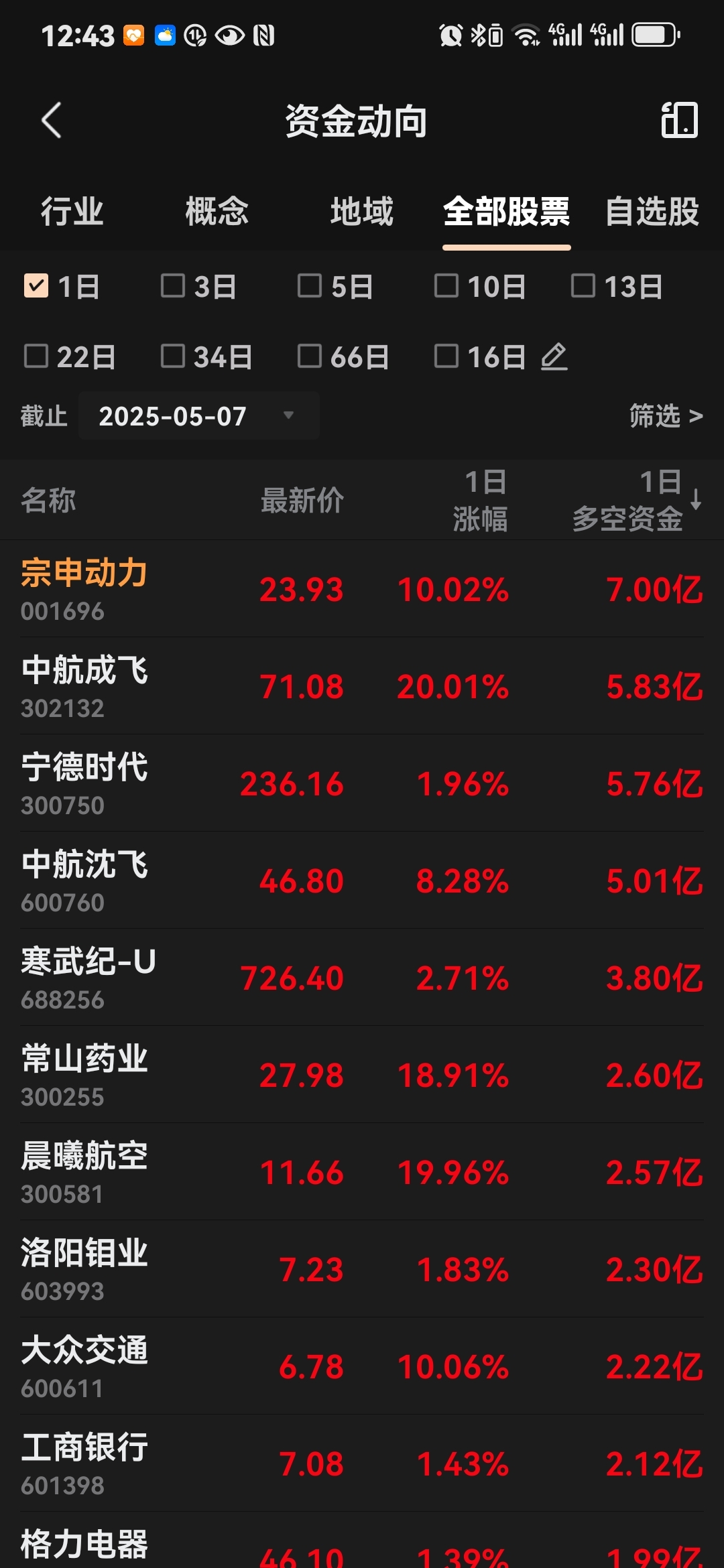 $宗申动力(SZ001696)$ 目前资金流入第一
