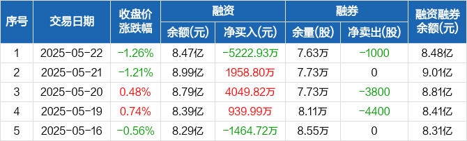 宗申动力:融资净偿还5222.93万元,融资余额8.47亿元(05-22)