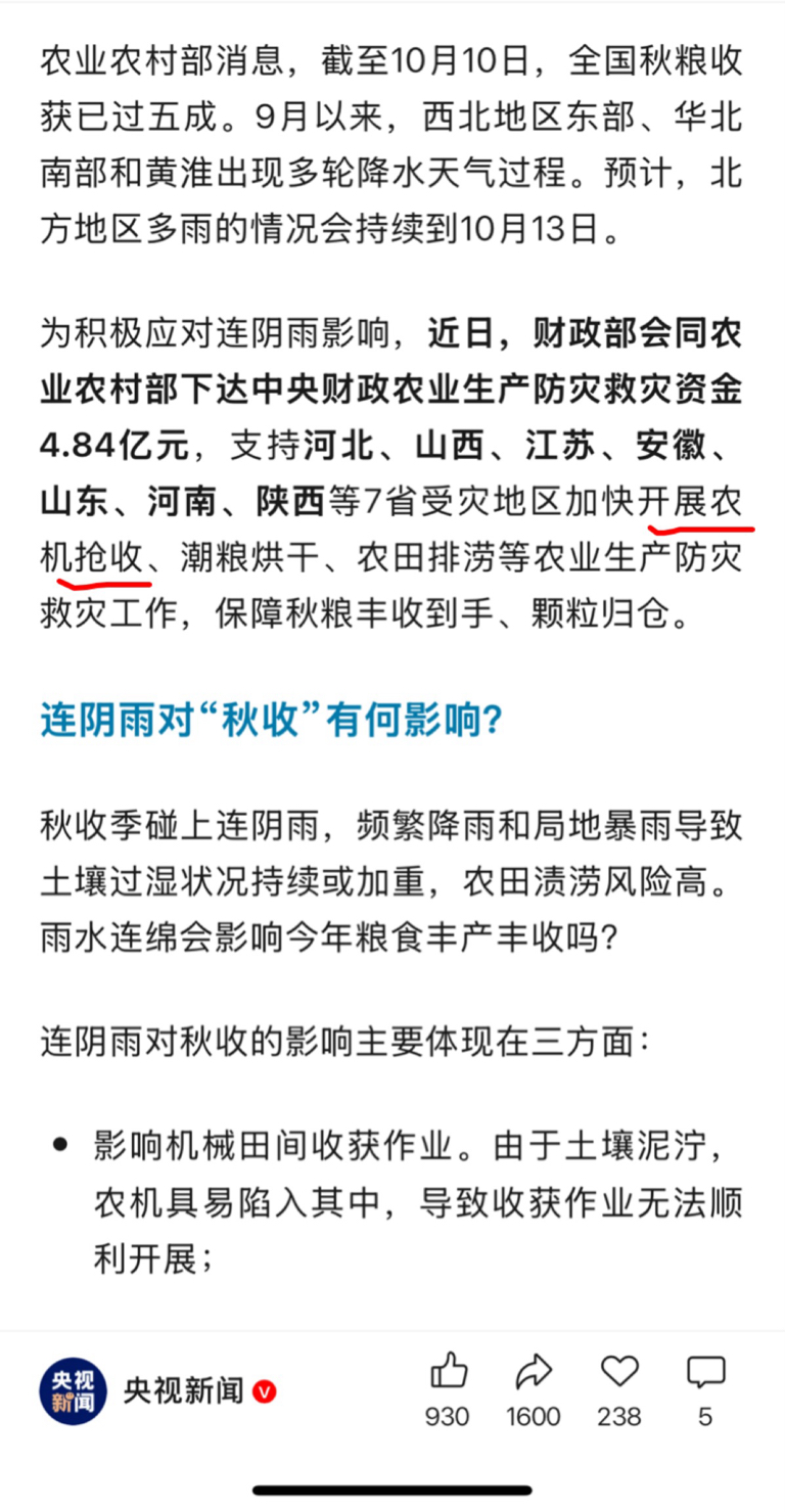 $宗申动力(SZ001696)$ 农机抢收,防灾救灾靠你了!