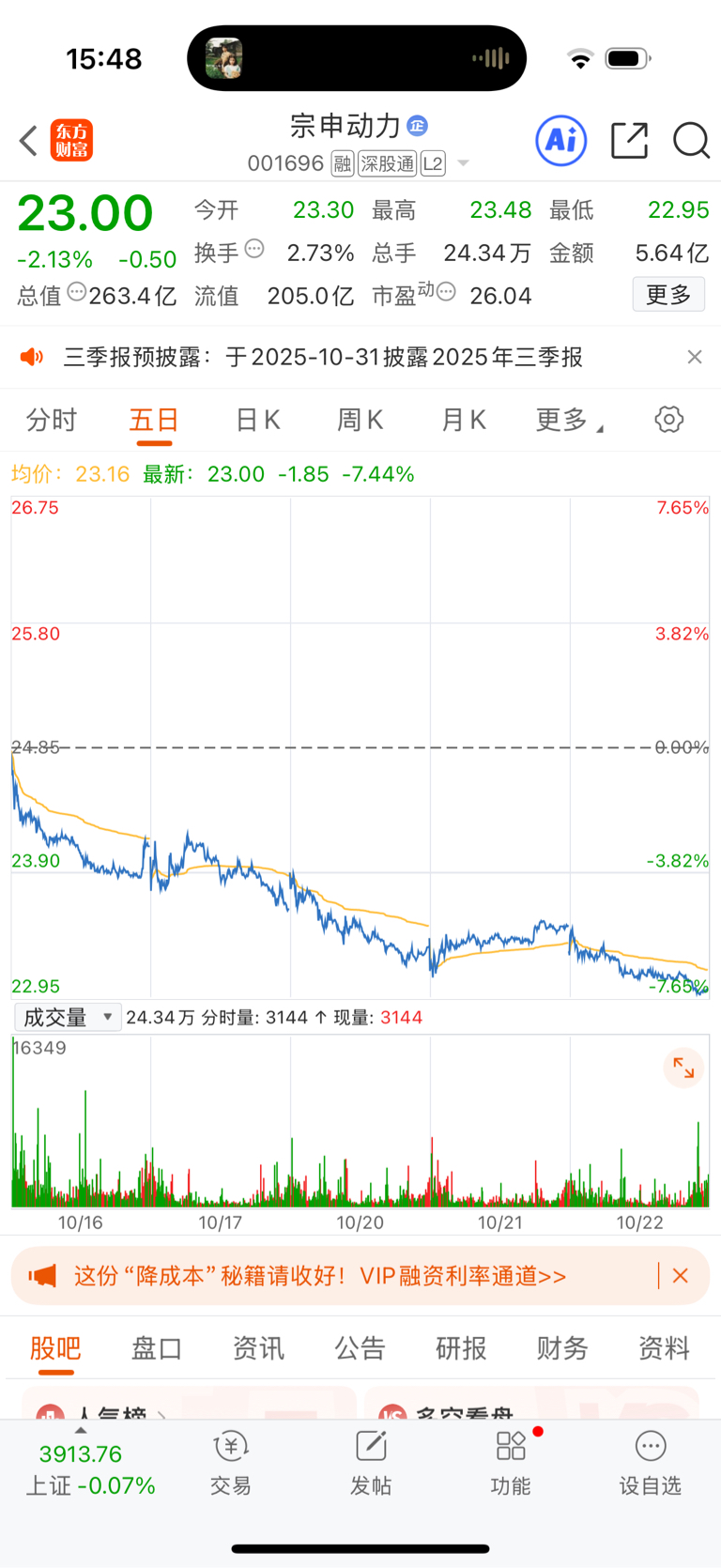 $宗申动力(SZ001696)$ 这五日线的分时美的像左TM的遗照一般,一毛钱做T的机会都不给你。