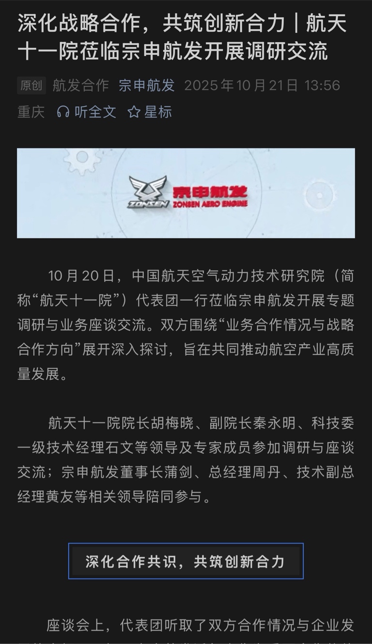 $宗申动力(SZ001696)$ 科技部副部长到宗申航发调研:“宗申航发将以此次调研指导为契机,聚焦航空动力产业发展需求,持续强化核心技术攻关,推动航空动力装备自主可控与高价值科技成果加速转化,为低空经济新质生产力与航空产业高质量发展注入强劲科技动能。”