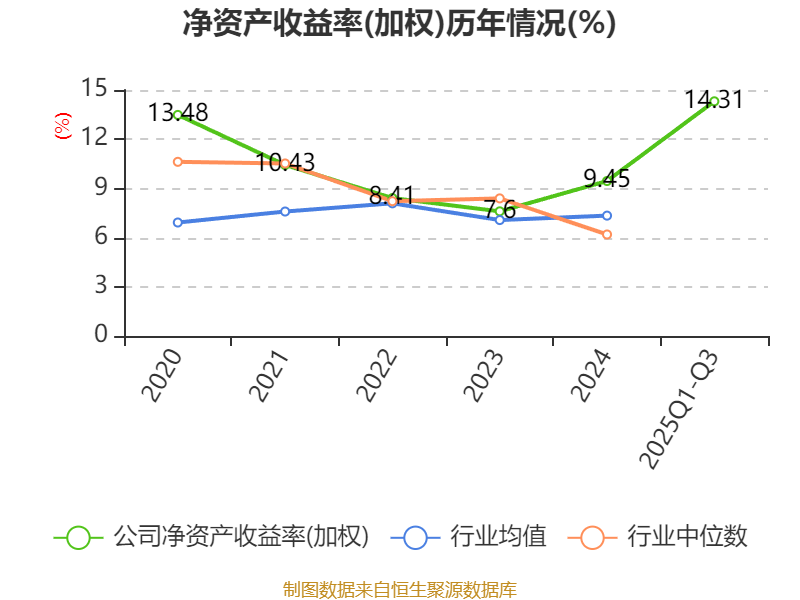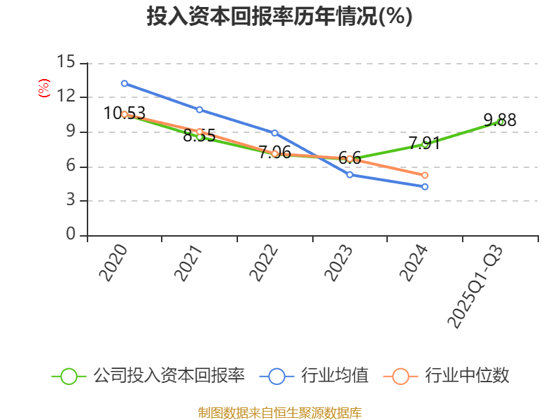盈利能力方面, 2025年前三季度公司加权平均净资产收益率为14.31%,同比上升6.32个百分点。公司2025年前三季度投入资本回报率为9.88%,较上年同期上升3.22个百分点。