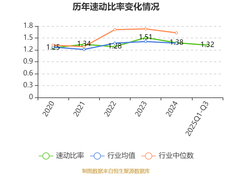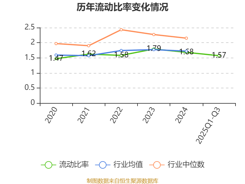 2025年前三季度,公司流动比率为1.57,速动比率为1.32。