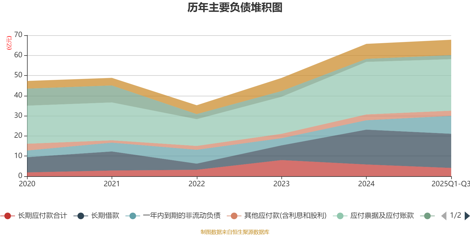 负债重大变化方面,截至2025年三季度末,公司一年内到期的非流动负债较上年末增加90.77%,占公司总资产比重上升3.12个百分点;应付票据及应付账款较上年末减少2%,占公司总资产比重下降1.64个百分点;长期应付款合计较上年末减少29.45%,占公司总资产比重下降1.63个百分点;长期借款较上年末减少1.83%,占公司总资产比重下降1.06个百分点。