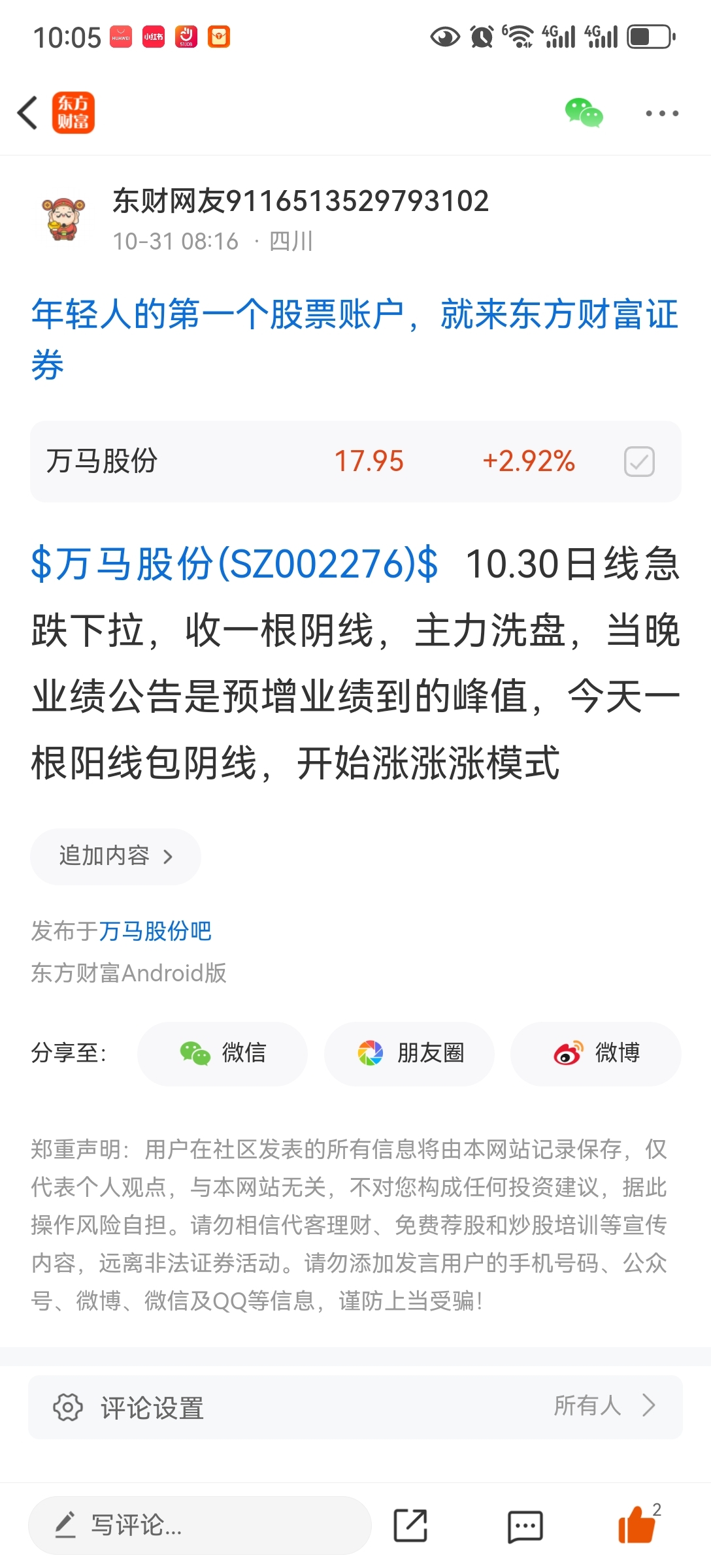 温馨提示: 1.根据《证券法》规定,禁止编造、传播虚假信息或者误导性信息,扰乱证券市场;2.用户在本社区发表的所有资料、言论等仅代表个人观点,与本网站立场无关,不对您构成任何投资建议。用户应基于自己的独立判断,自行决定证券投资并承担相应风险。《东方财富社区管理规定》