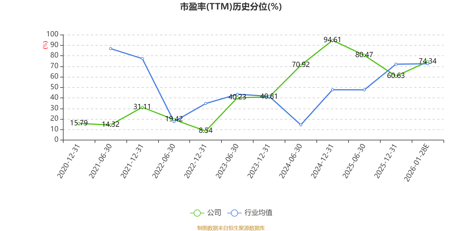 市盈率、市净率为负时,不显示当期分位数,会导致折线图中断。