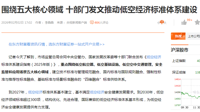 十部门联合发布的《低空经济标准体系建设指南》聚焦低空航空器.