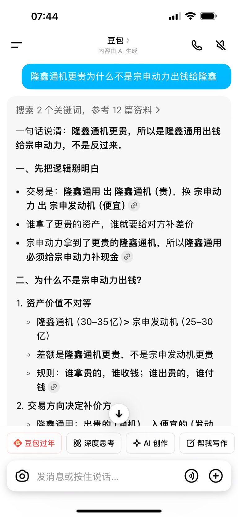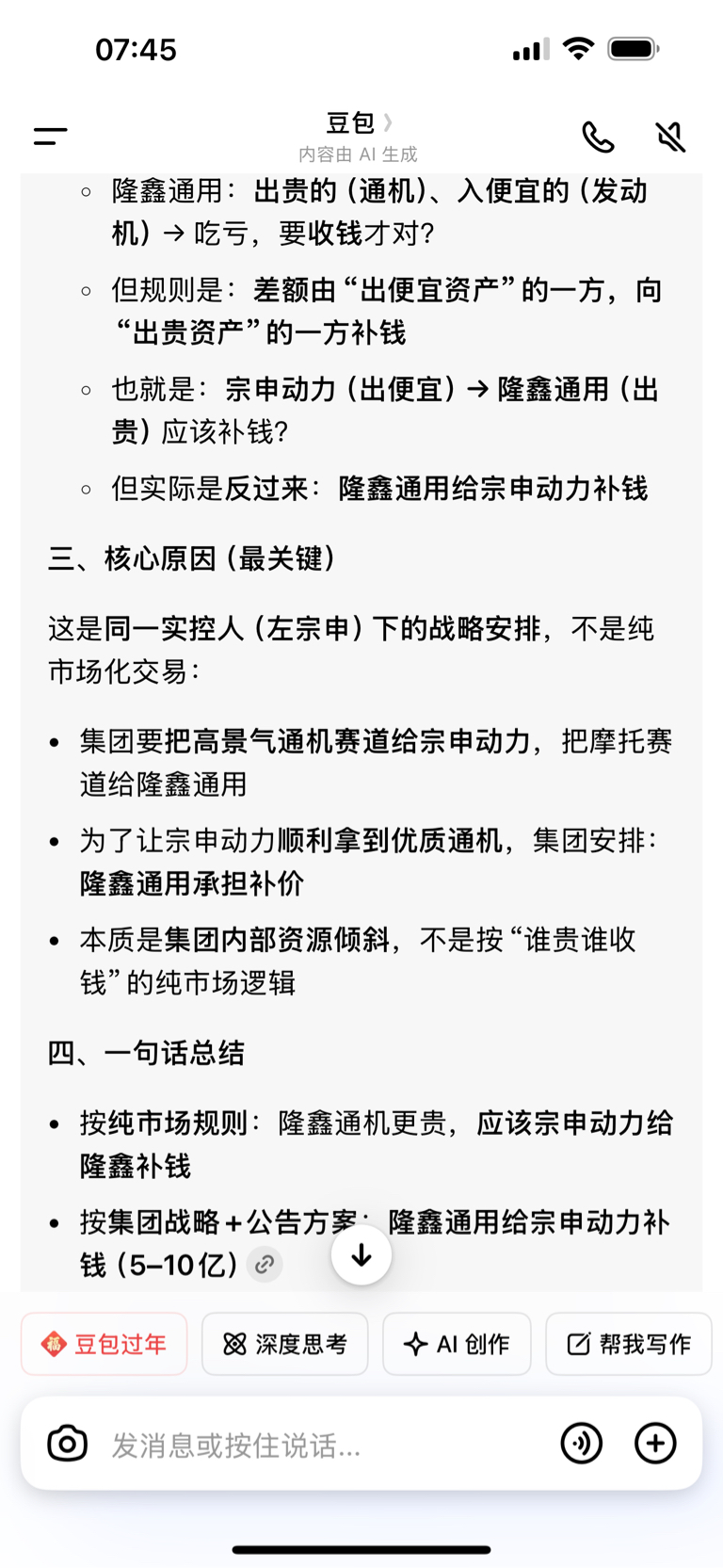 你这个分析让我想到了宗申产业集团前段时间为什么把和智元机器人的合作都给了隆鑫通用,原来是年后要要置换,拿走隆鑫高利润项目,塞给他夕阳产业,所以给机器人项目堵其他股东的嘴