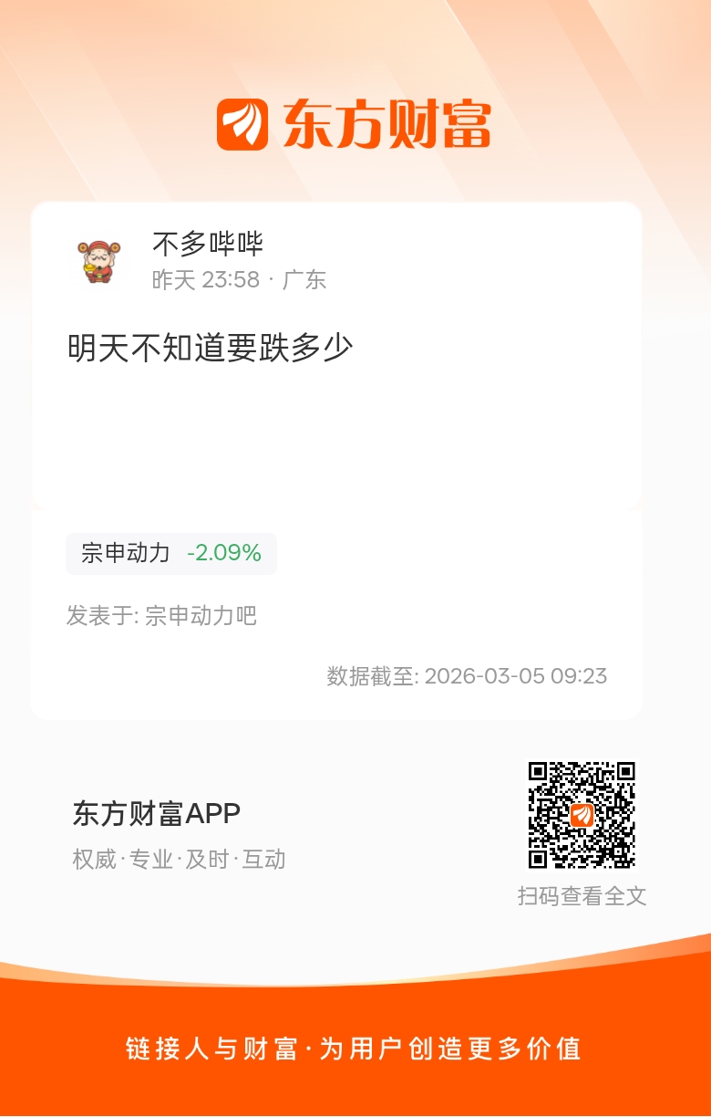 温馨提示: 1.根据《证券法》规定,禁止编造、传播虚假信息或者误导性信息,扰乱证券市场;2.用户在本社区发表的所有资料、言论等仅代表个人观点,与本网站立场无关,不对您构成任何投资建议。用户应基于自己的独立判断,自行决定证券投资并承担相应风险。《东方财富社区管理规定》