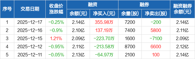 招商港口:融资净买入355.98万元,融资余额2.14亿元(12-17)