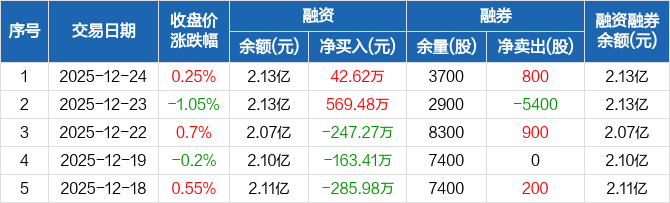 招商港口:融资净买入42.62万元,融资余额2.13亿元(12-24)
