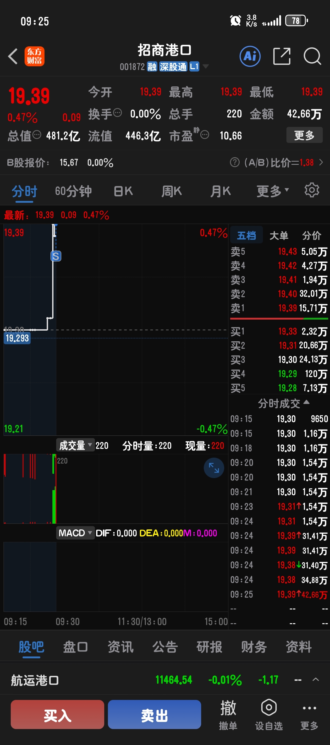 $招商港口(SZ001872)$ 集合竞价走了,留下的兄弟发财