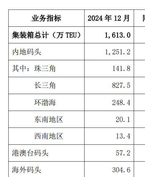 招商港口发布的业务信息,2024年12月海外码头集装箱为304.6,2025年1