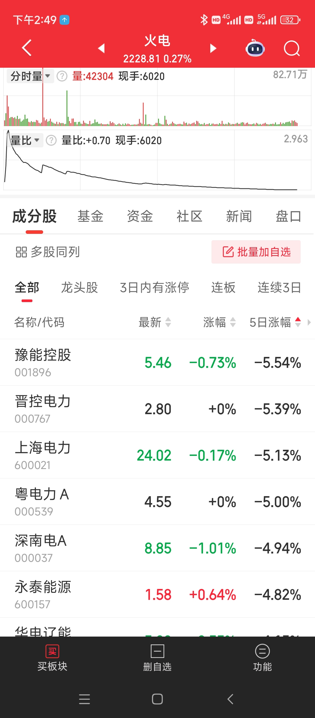 $豫能控股(SZ001896)$ 5日跌幅倒数第一,