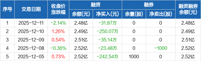 豫能控股:连续5日融资净偿还累计583.1万元(12-11)