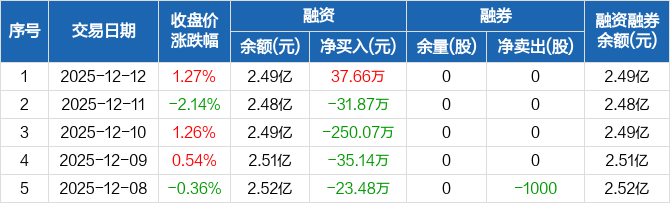 豫能控股:融资净买入37.66万元,融资余额2.49亿元(12-12)