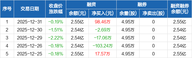 豫能控股:融资净买入98.46万元,融资余额2.55亿元(12-31)