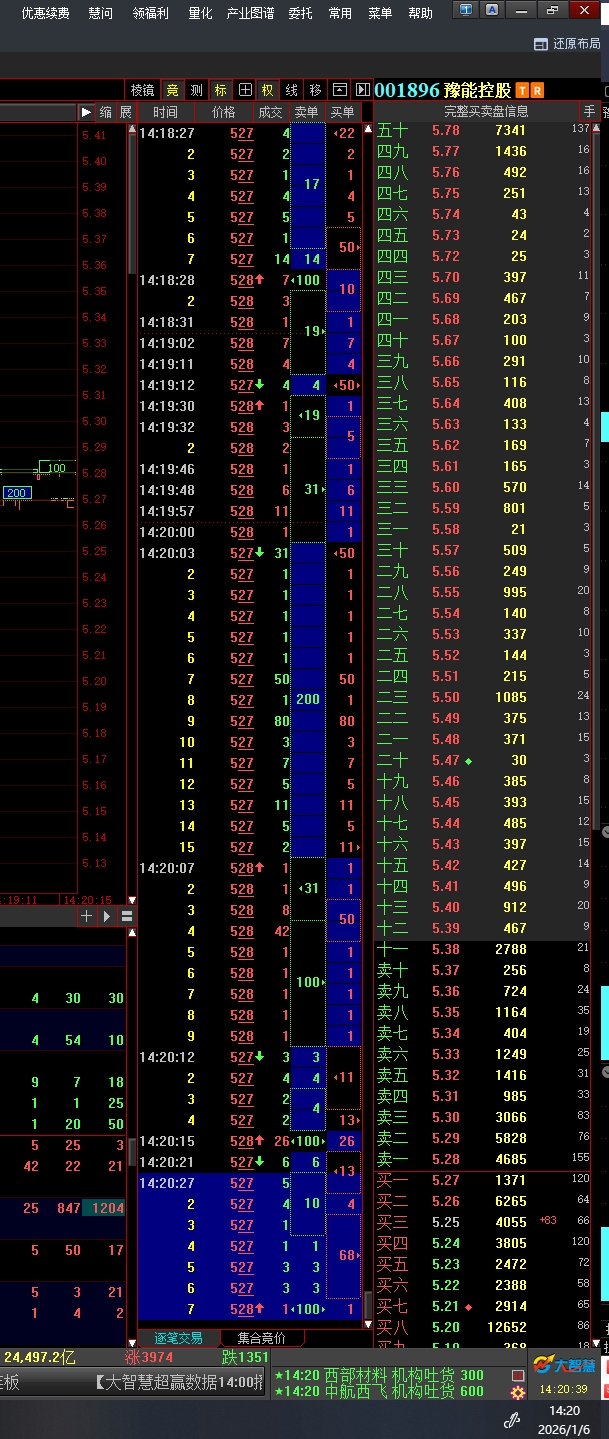 $豫能控股(SZ001896)$ 盘口,全部卖档,全档,要么高度控盘,要么贪婪,会被截胡!