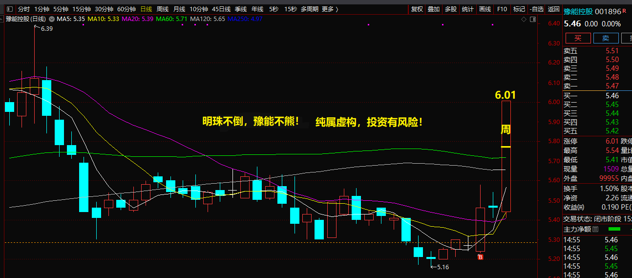 本大师精准预测:周一涨停板6.01元!