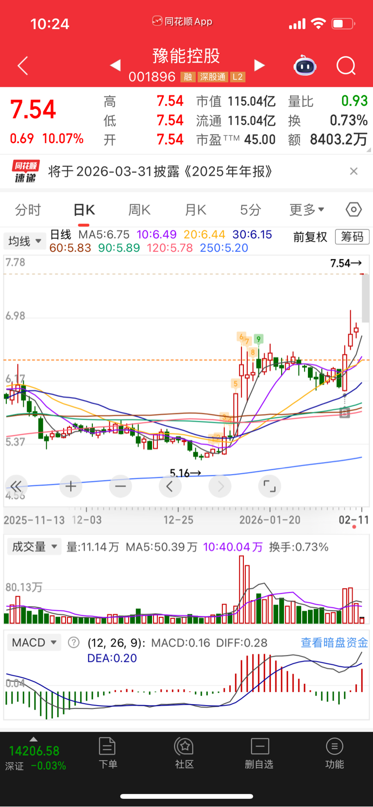 $豫能控股(SZ001896)$ 本来计划高开后加仓,起来一看顶一字了