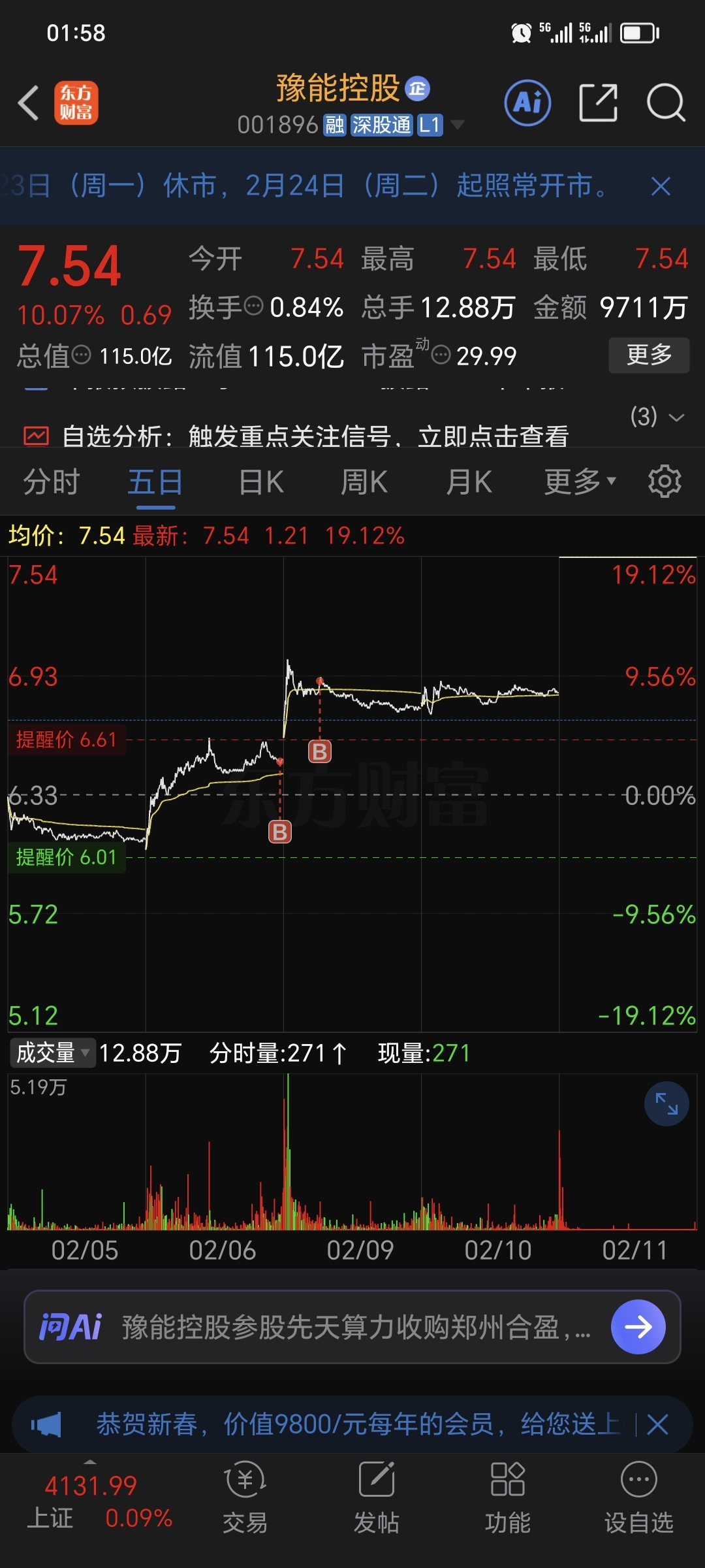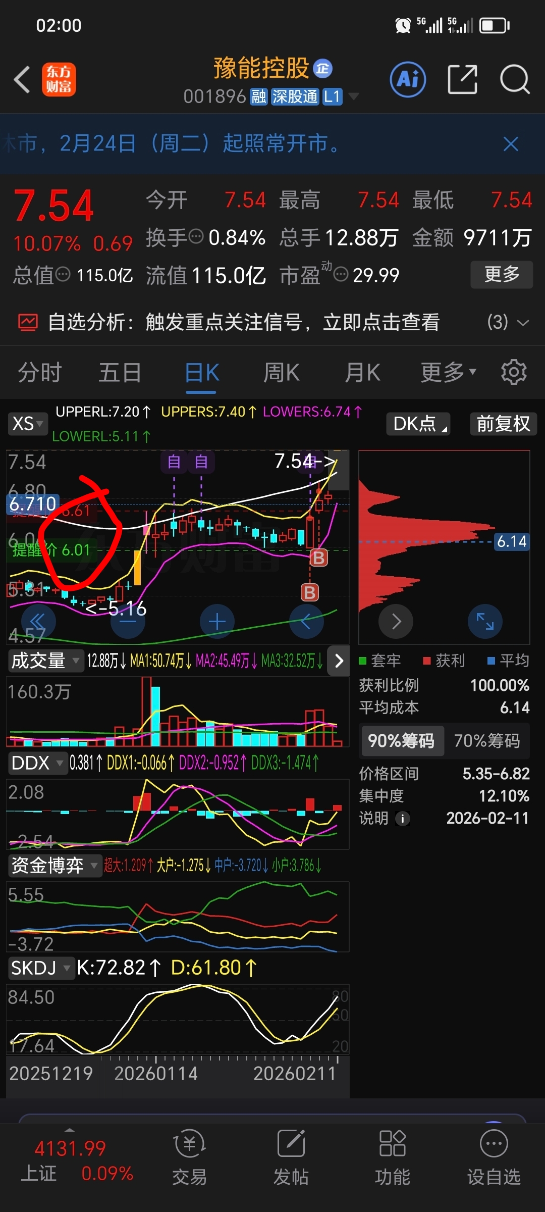 涨停板后红中高点6.61,持续缩量震仓每日收盘价没有跌破涨停板的顶部,在出倍量阳当天u收盘前几分钟半仓价入,第二天确定突破涨停板后红中K线高点6.61后又加满仓,又缩量倍量小阳K最后震仓,终于迎来算力利好消息的东风吹起来了!