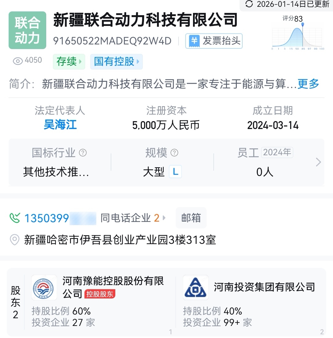 我感觉新疆这家公司也要有动作了,比先天算力成立时间早