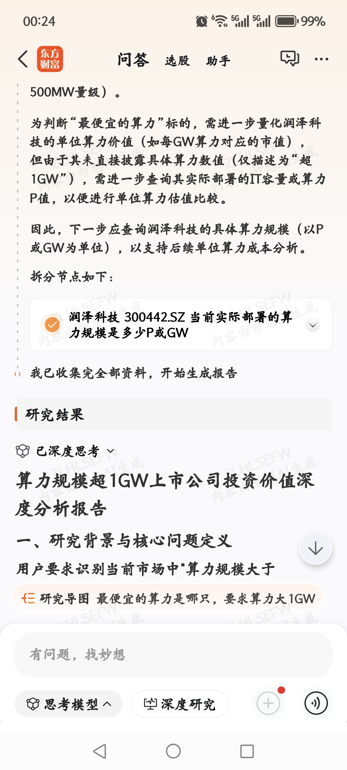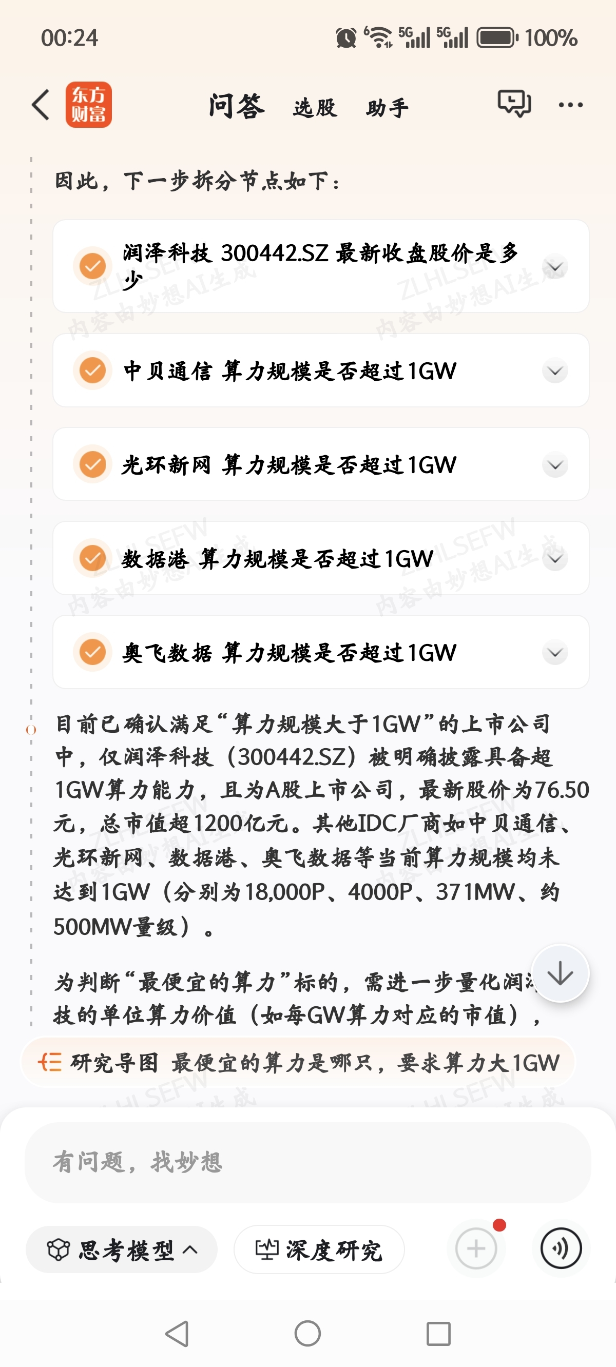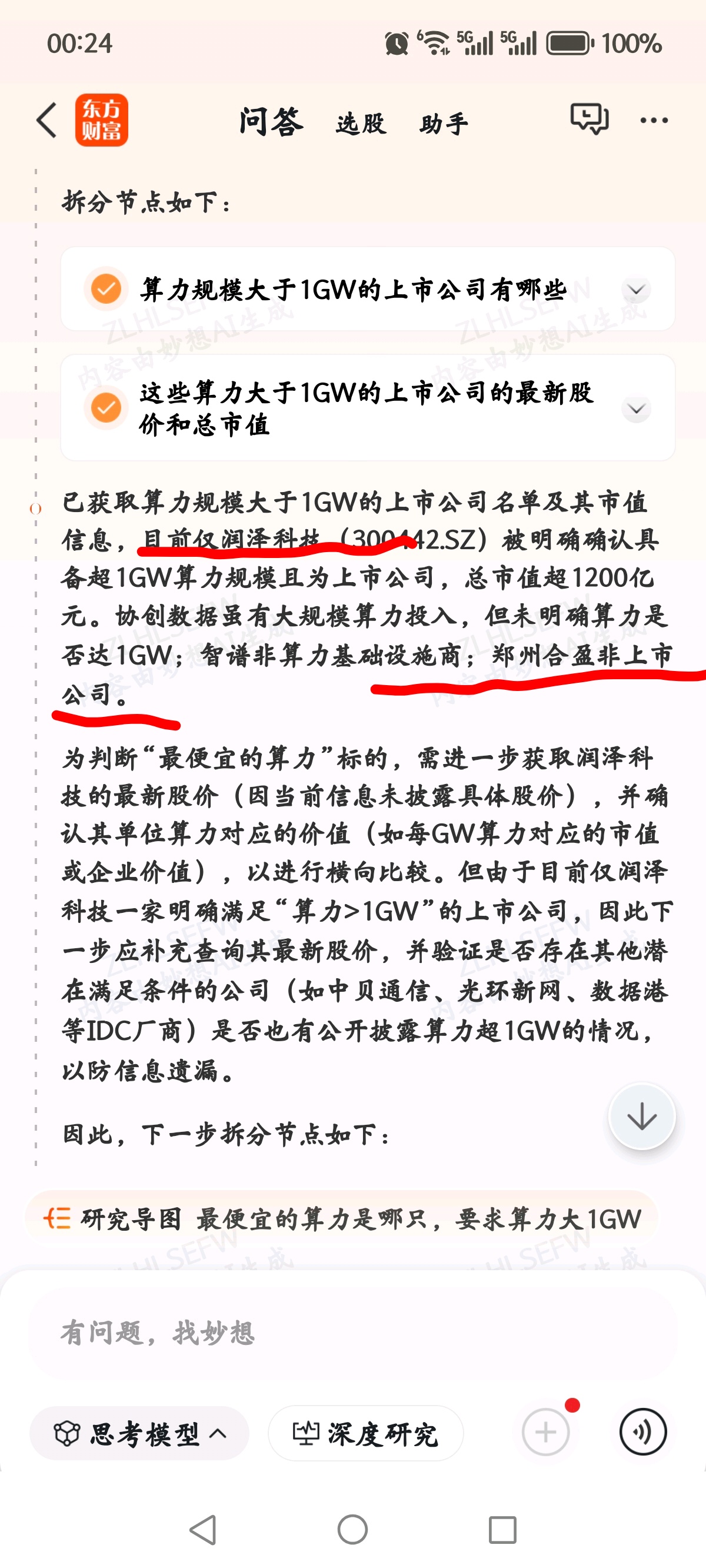 估算001896估值应该30元以上,最便宜的算力是哪只,要求算力大1GW!GW!