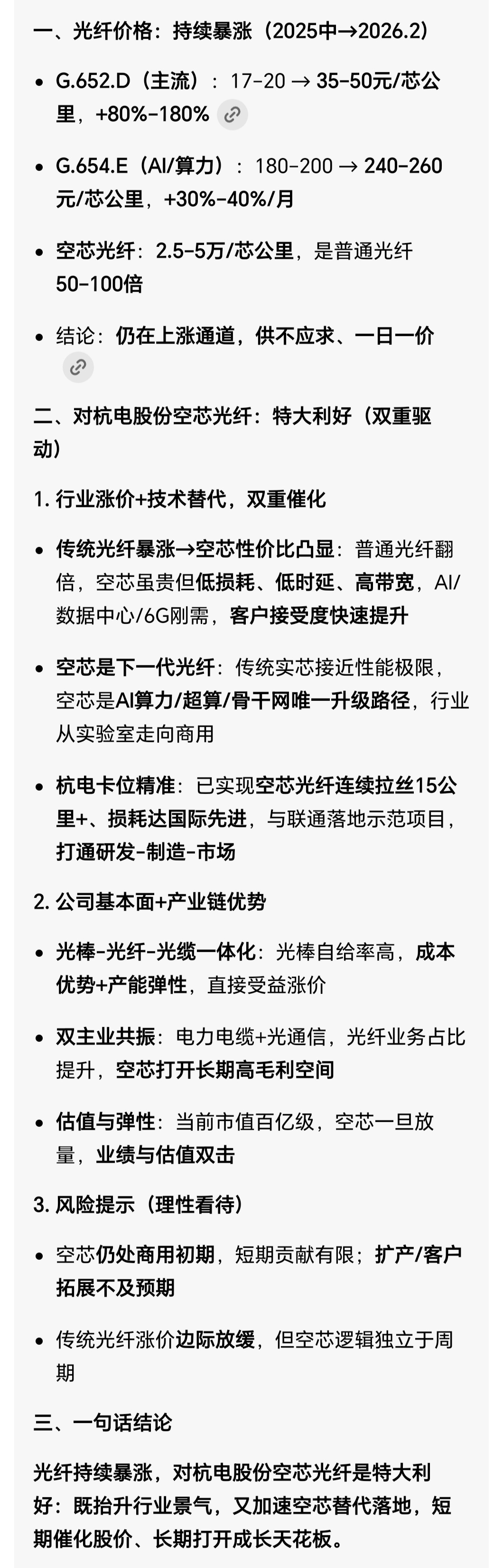 光纤价格已翻倍,空芯光纤涨价已翻近3倍,这是支持康宁大幅上涨的理由!国内光纤股:长飞光纤、通鼎互联、杭电股份,其中空芯光纤最具备优势的杭电股份首当其冲!