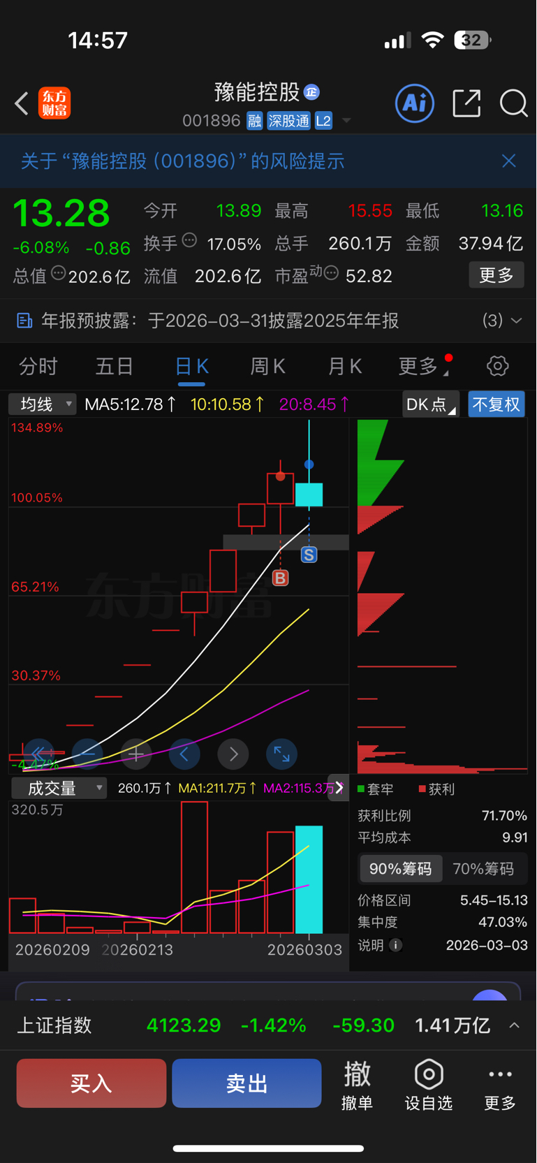 $豫能控股(SZ001896)$ 可惜早上板上没走