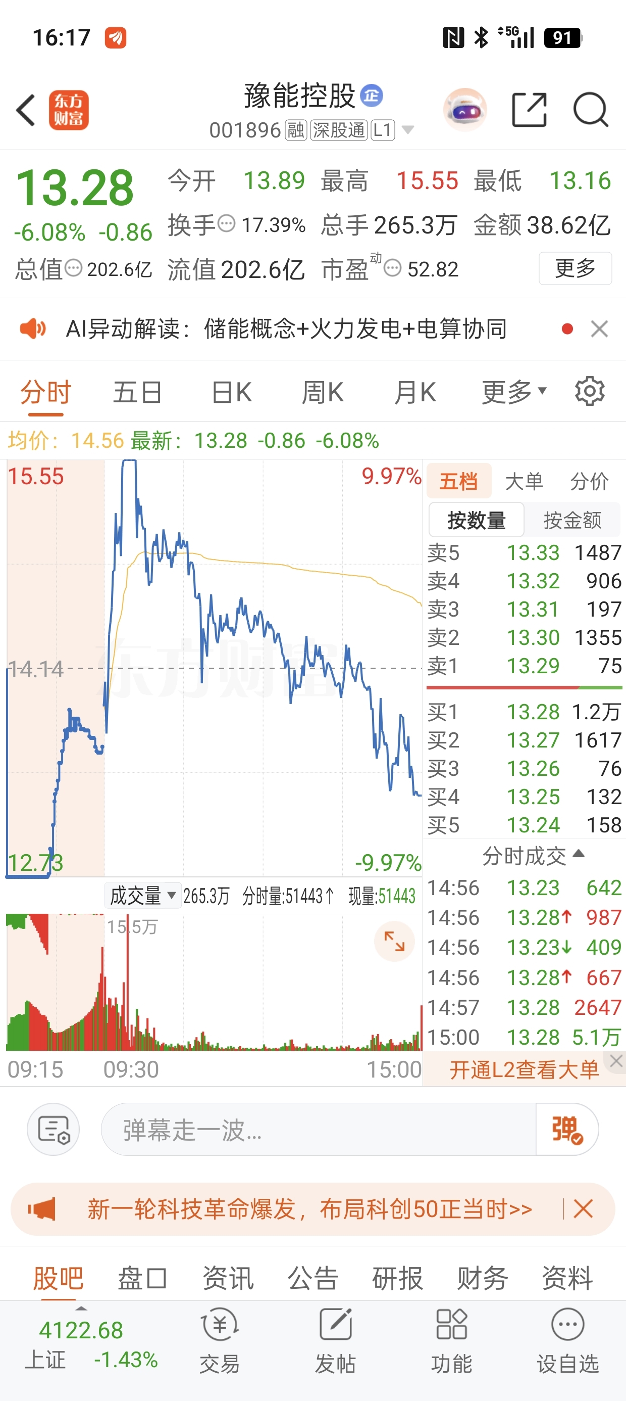 有没有高手能稍微点拨一下,问什么豫能控股早盘成绩很好弱转强后面后面会炸板下杀?感