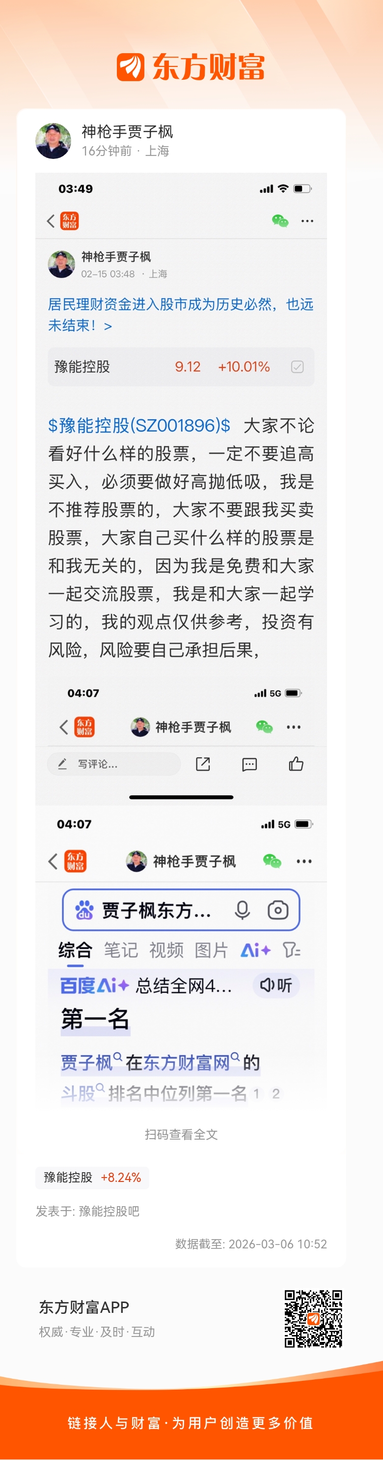 $豫能控股(SZ001896)$ 这个股我是二月十五号开始发表文章看涨的股票,我是不推荐股票的,大家不要跟我买卖股票,大家自己买什么样的股票是和你无关的,因为我是免费和大家一起交流股票,我是和大家一起学习的,我的观点仅供参考,投资有风险,风险要自己承担后果,