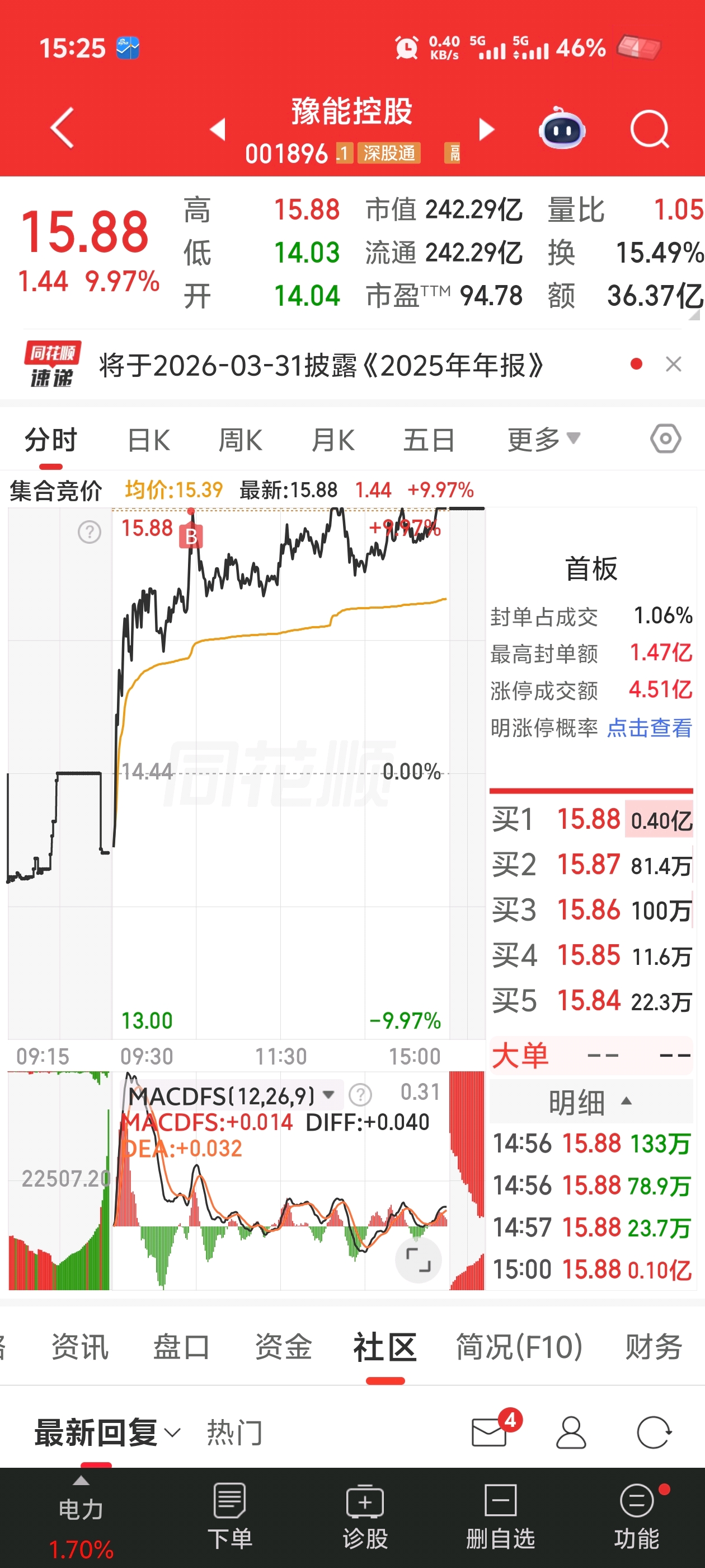 $豫能控股(SZ001896)$ 下次再也不来这里打板了
