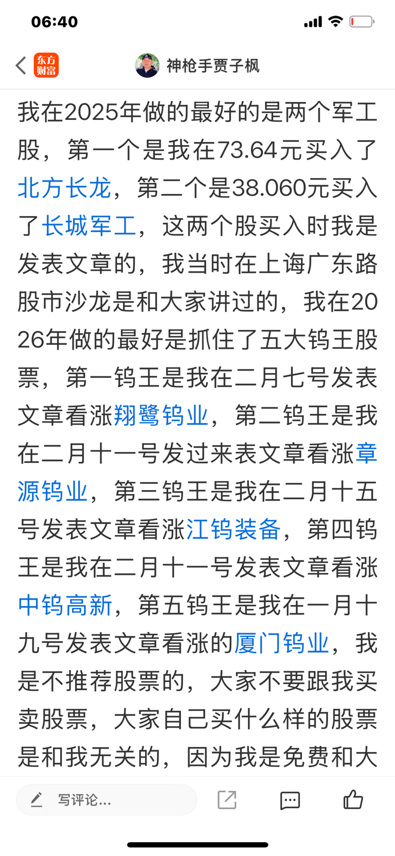 这个股我从二月十五号开始每天发表上涨的文章,我是不推荐股票的,大家不要跟我买卖股
