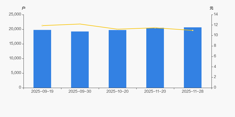 自2025年9月30日以来,公司股东户数连续3期上涨,截至目前增幅为7.37%。2025年9月30日至2025年11月28日区间股价下降10.00%。