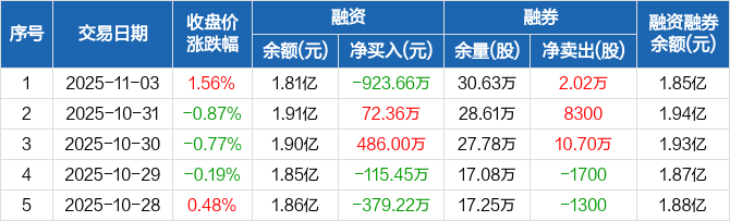 招商公路:融资余额1.81亿元,创近一年新低(11-03)