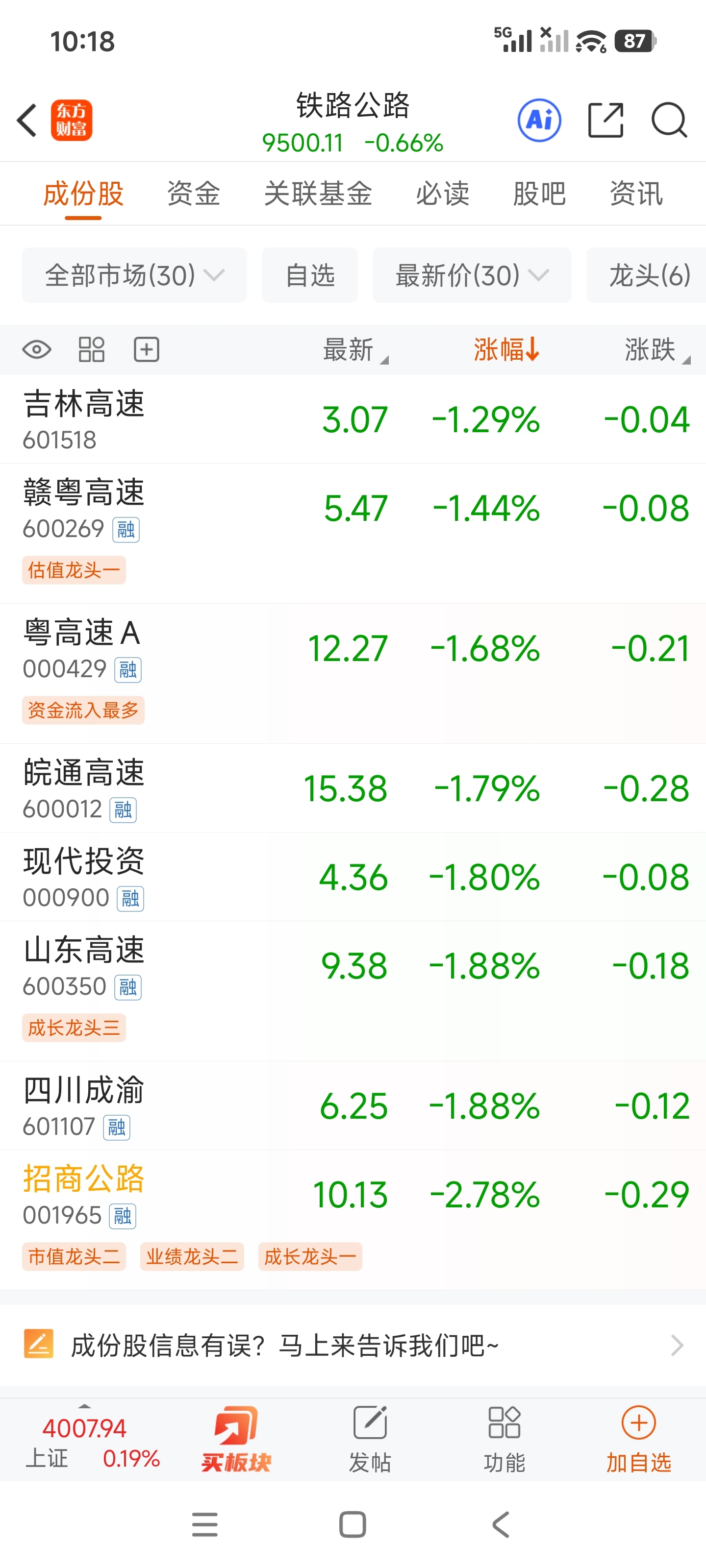 $招商公路(SZ001965)$ 板块跌幅第一!!