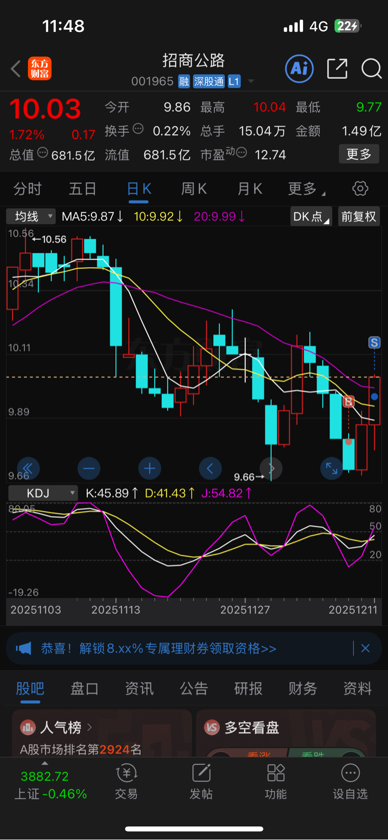 $招商公路(SZ001965)$ 精准买入,卖出就不知道了。
