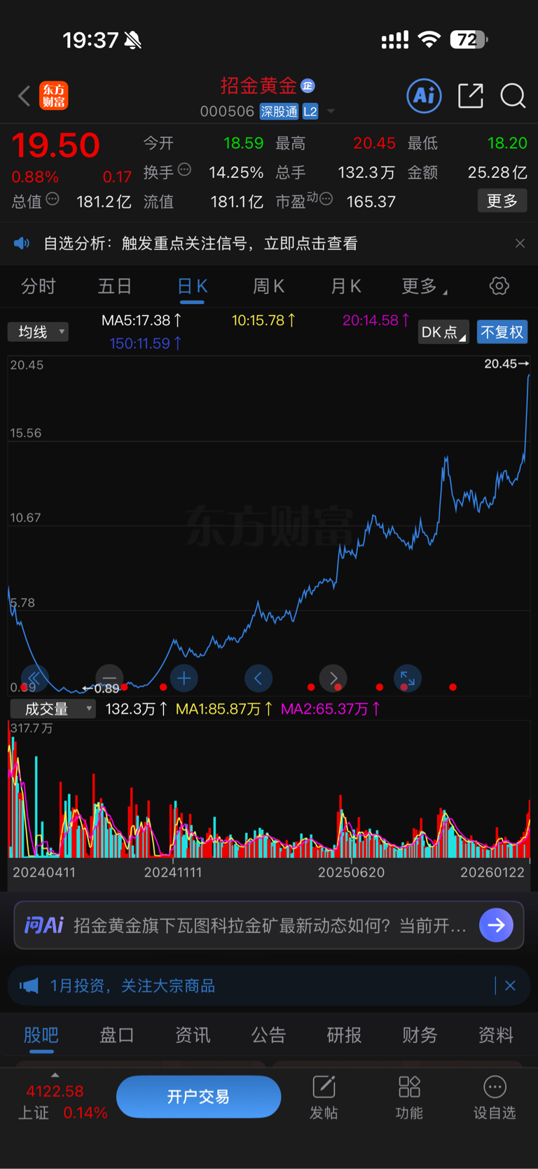 开头都是一个“招”一个是“招金”一年上涨23倍!飞龙在天!舍我其谁!