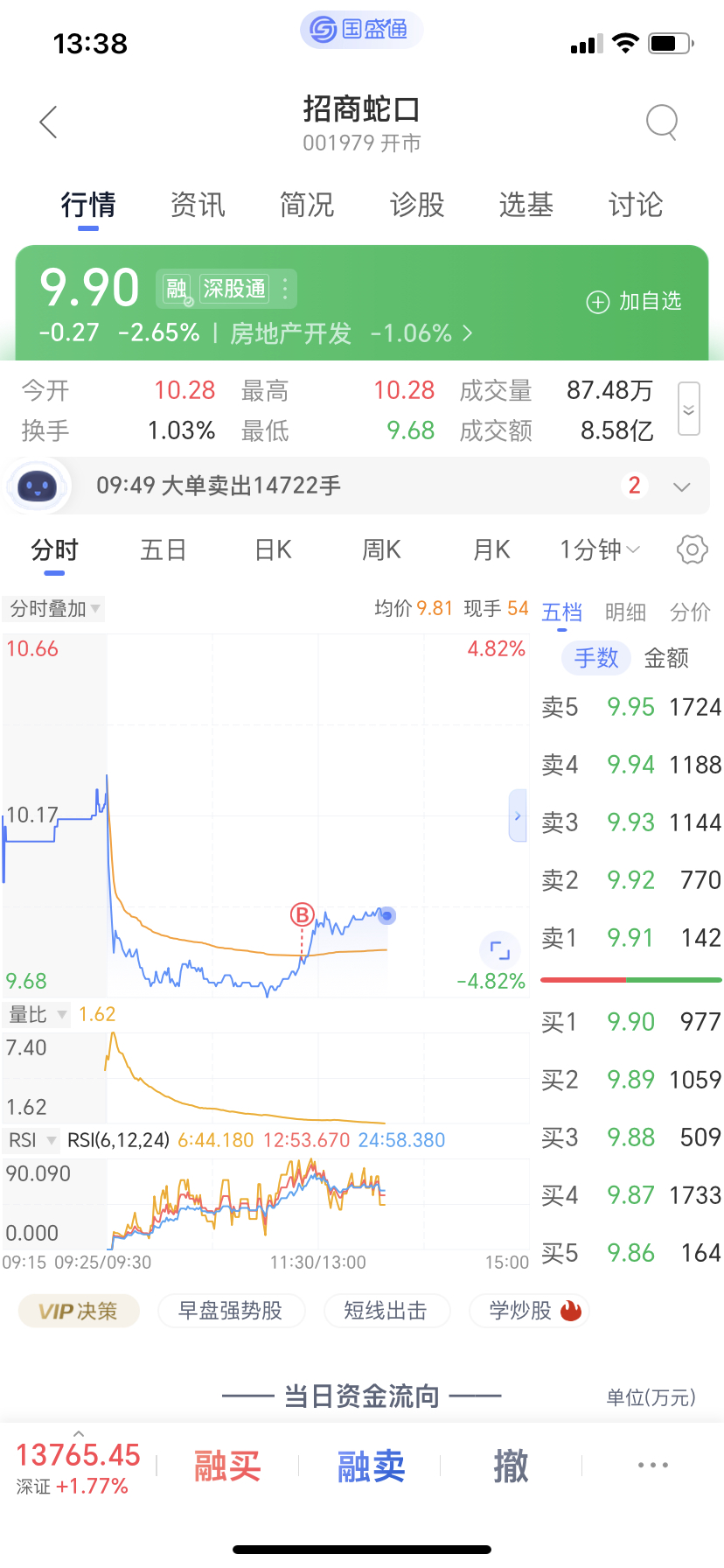 $招商蛇口(SZ001979)$ 兄弟们我回来了,接回了四分之一仓位。