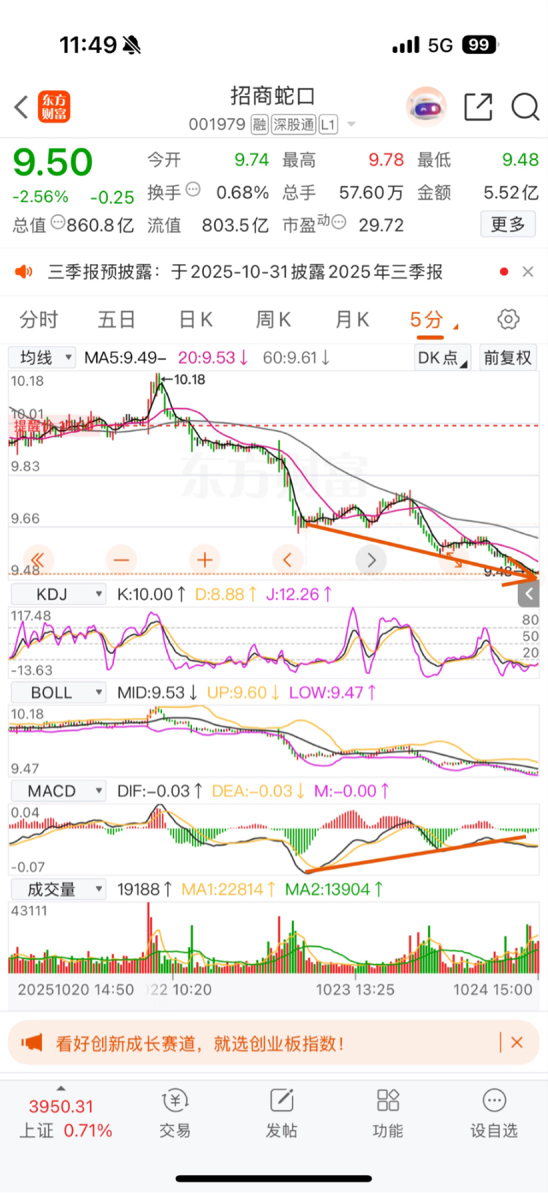 $招商蛇口(SZ001979)$ 五分钟级别有个macd底背离 波一下反弹吧 弱反弹的话直接走