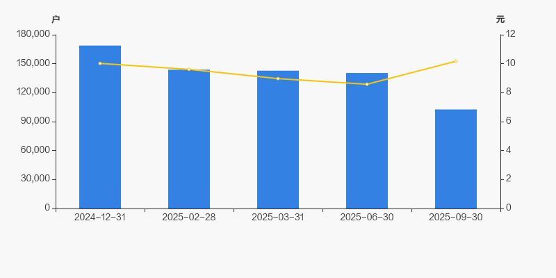 自2024年12月31日以来,公司股东户数连续4期下降,截至目前减幅为39.20%。2024年12月31日至2025年9月30日区间股价上涨1.49%。